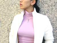 独特なフォルムながら、首元に下がると意外とシンプルでセクシー。 |