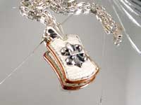 ◆中世の騎士をイメージしたレザーペンダント。 盾をイメージしたレザーベースに、フランス王家の紋章をモチーフとしたフラダリコンチョをセット。 重厚なレザーベースの質感、そしてスタイリッシュなシルバーの質感を共に楽しんでいただけるレザージュエリーです。