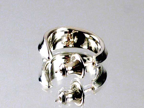 鏡面仕上のシャープで流れるようなラインが耳元をスタイリッシュに飾ります。 適度なサイズで心地良いボリューム感でしっかりとした着け心地をお楽しみいただけるピアスです。